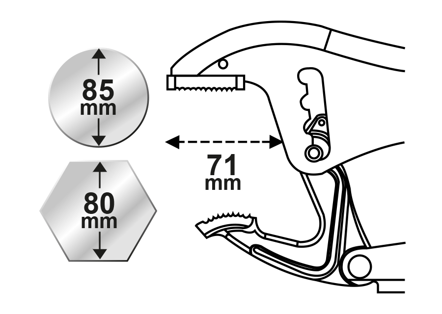 • Mordaza de acero forjado, ranurada, templada, con engranaje a 58/60 HRC
