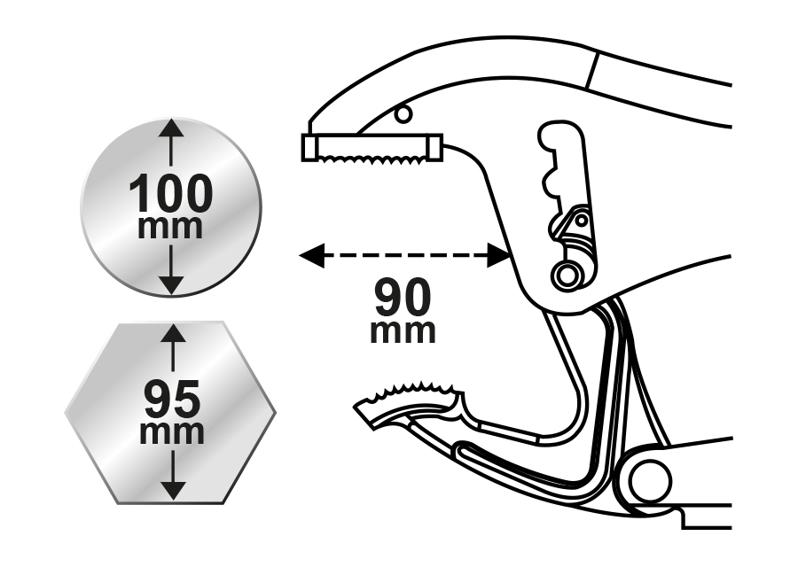 • Mordaza de acero forjado, ranurada, templada, con engranaje a 58/60 HRC