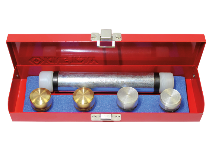 • Entregado con 6 puntas intercambiables (Ø 25mm): 2 de poliamida, 2 de latón, 2 de aluminio
