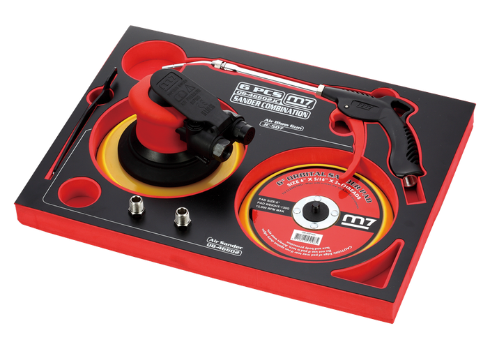 Bandeja de espuma con lijadora y sopladora