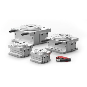 La serie DRF de actuadores rotativos de Destaco está diseñada para aplicaciones que requieren carga de producto, orientación de piezas y cargas útiles pesadas en espacios compactos. Estos modelos cuentan con posicionamiento de tope final de baja precisión, torque completo al final de carrera y juego cero.