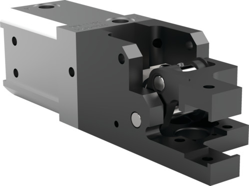 Esta pinza de sala de prensa modular estilo leva de servicio mediano no se bloquea y se puede usar vertical u horizontalmente. Las aplicaciones habituales incluyen el agarre, sujeción, colocación, extracción y transporte de láminas metálicas y otras piezas, principalmente en plantillas y sistemas de manipulación.