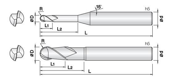Fresa MD CBN esférica Z=2 HRC 50-72