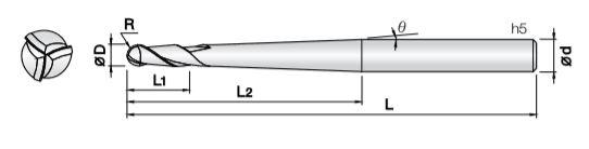 Fresa MD GRAFITO esférica cuello Z=3 DIA